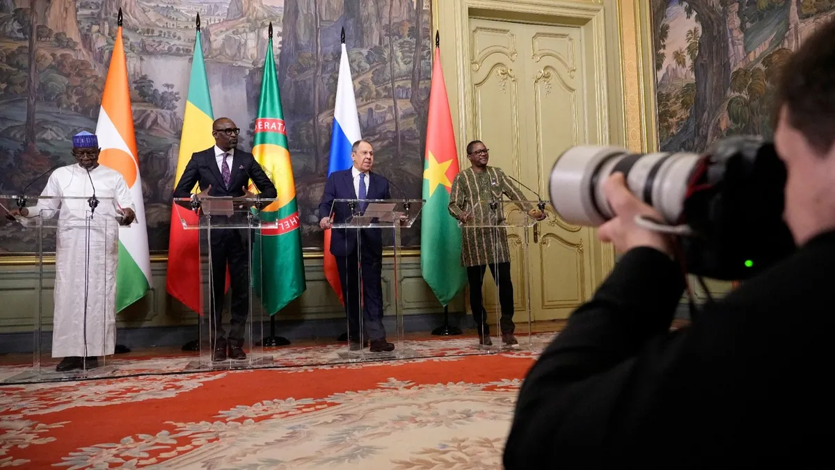 قالت روسيا ومالي وبوركينا فاسو والنيجر، في بيان مشترك، إن موسكو ستلتزم بمساعدة الحكومات الثلاث للحصول على الأسلحة والتدريب لقوة قوامها 5 آلاف جندي، من المقرر نشرها في منطقة الساحل الإفريقي، جنوب الصحراء الكبرى.