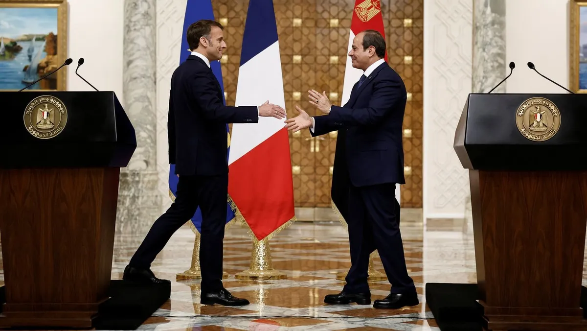 أكد الرئيسان المصري عبد الفتاح السيسي والفرنسي إيمانويل ماكرون، الاثنين، رفض تهجير الفلسطينيين في غزة، أو ضم إسرائيل لقطاع غزة أو الضفة الغربية المحتلة، كما أعربا عن دعمهما للخطة العربية بشأن قطاع غزة، بينما وقع الطرفان اتفاقاً لترفيع العلاقات إلى مستوى "الشراكة الاستراتيجية".