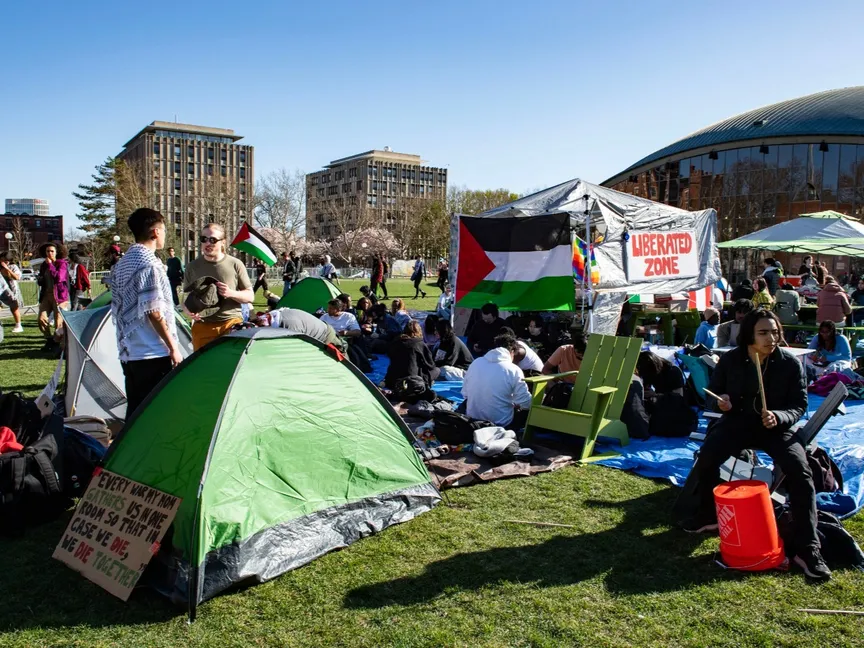 احتجاجات لطلاب من جامعة هارفارد ومعهد ماساتشوستس دعماً للفلسطينيين في غزة. 22 أبريل 2024 - AFP