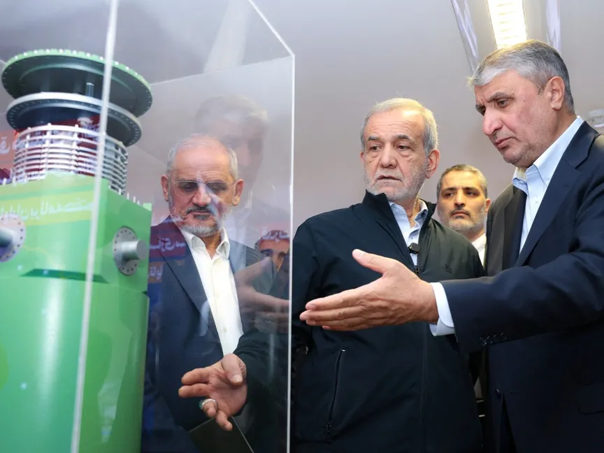 الرئيس الإيراني مسعود بيزشكيان يزور معرض الإنجازات النووية الإيرانية في طهران. 9 أبريل 2025. - Reuters