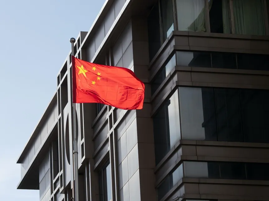 علم الصين يرفرف أمام القنصلية الصينية في هيوستن بولاية تكساس - 22 يوليو 2020 - REUTERS