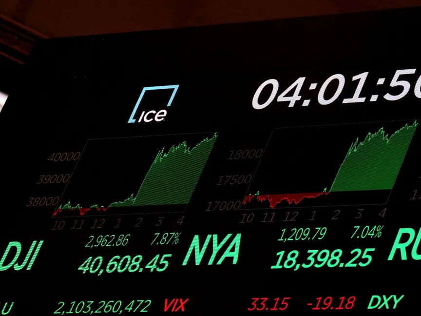 وعقب قرار ترمب، الأربعاء، تعليق الرسوم، سجل مؤشر "إس آند بي 500" ارتفاعاً بنسبة 9.5%، هو الأكبر منذ انتعاشة السوق عقب الانهيار الذي أعقب جائحة فيروس كورونا، في حين قفز "ناسداك 100" بنسبة 12%، وسط حالة من الراحة سيطرت على الأسواق كما اكتست الأسهم باللون الأخضر.
