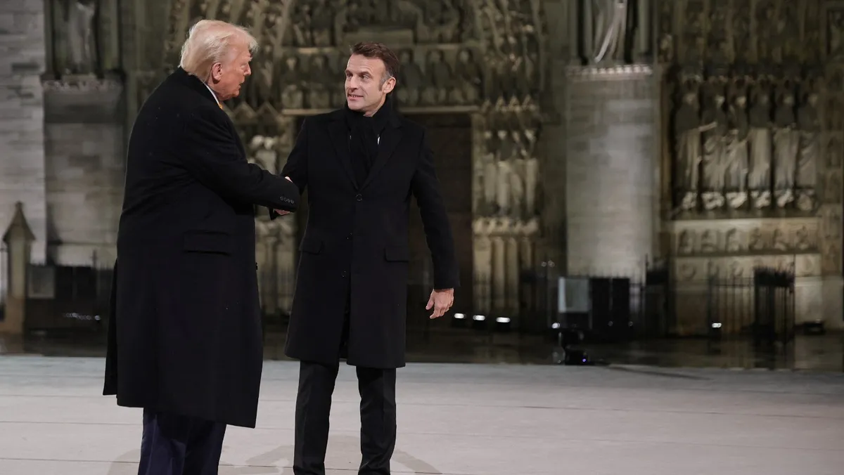 وجدَّد ماكرون التأكيد على أن فرنسا والاتحاد الأوروبي سيشكلان جبهة موَّحدة فيما يتعلق بالمفاوضات الرامية إلى التوصل إلى اتفاق، وإلغاء الرسوم الجمركية الأميركية.