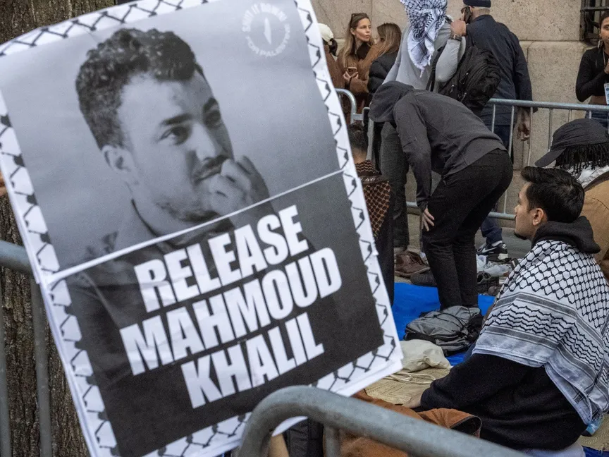 ووصف خليل (30 عاماً) نفسه بأنه سجين سياسي. واعتقل خليل من المبنى السكني التابع لجامعة كولومبيا، ونقل إلى سجن لويزيانا.
