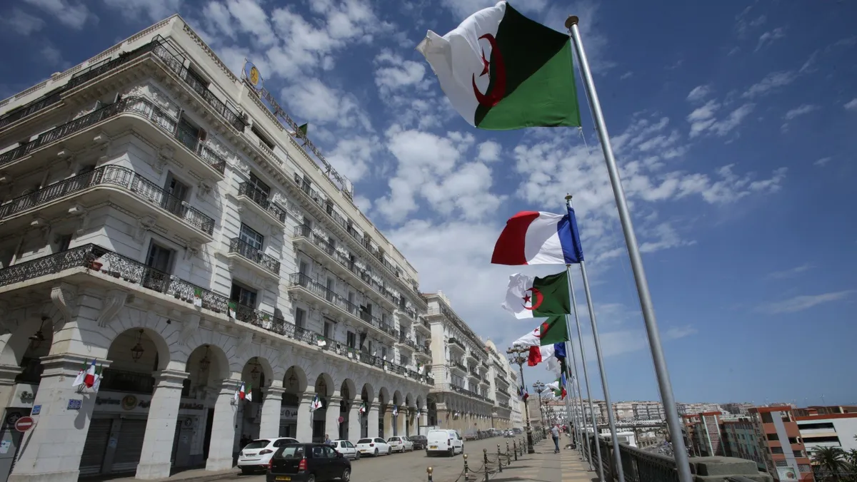 أعلام جزائرية وفرنسية خلال زيارة الرئيس الفرنسي إيمانويل ماكرون إلى الجزائر. 25 أغسطس 2022 - Reuters