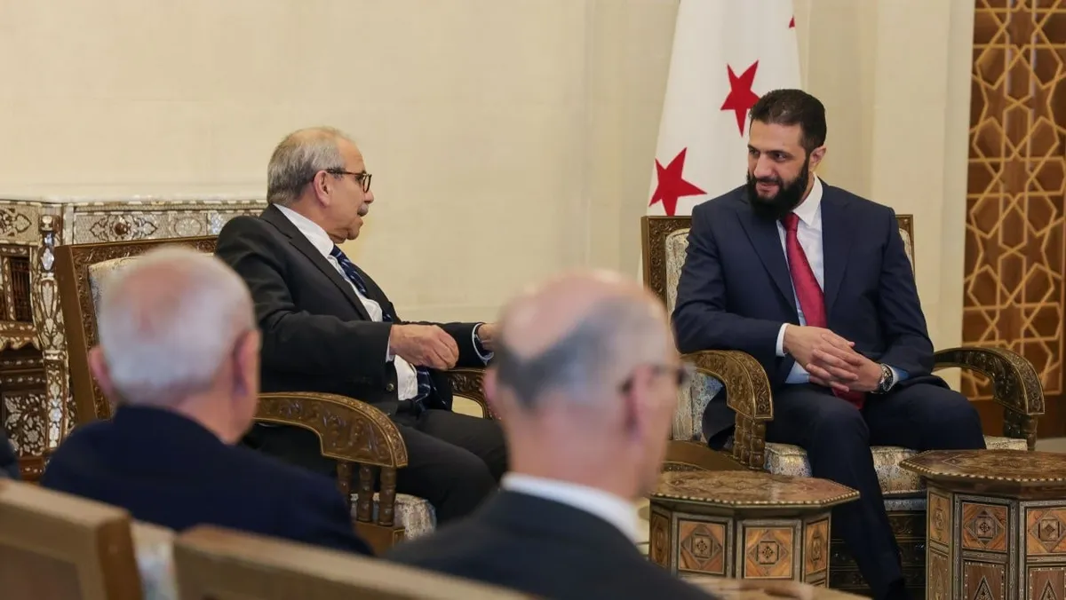 واستقبل الشرع في قصر الشعب بالعاصمة دمشق، الاثنين، رئيس مجلس الوزراء اللبناني نواف سلام على رأس وفد يضم وزراء الدفاع والداخلية والخارجية، وهي الأولى له منذ تنصيب الحكومة اللبنانية في فبراير الماضي.