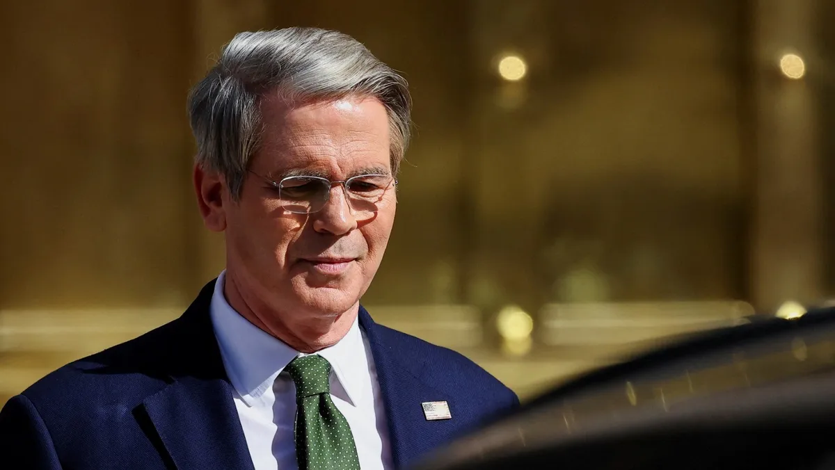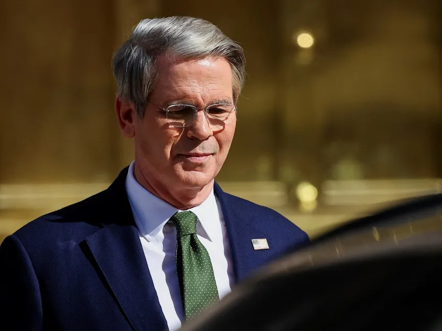 وزير الخزانة الأميركي سكوت بيسنت يغادر مبنى وزارة الاقتصاد، بعد أيام من إبرام إدارة الرئيس الأرجنتيني خافيير ميلي اتفاقية قرض جديدة مع صندوق النقد الدولي، في بوينس آيرس، الأرجنتين. 14 أبريل 2025 - Reuters