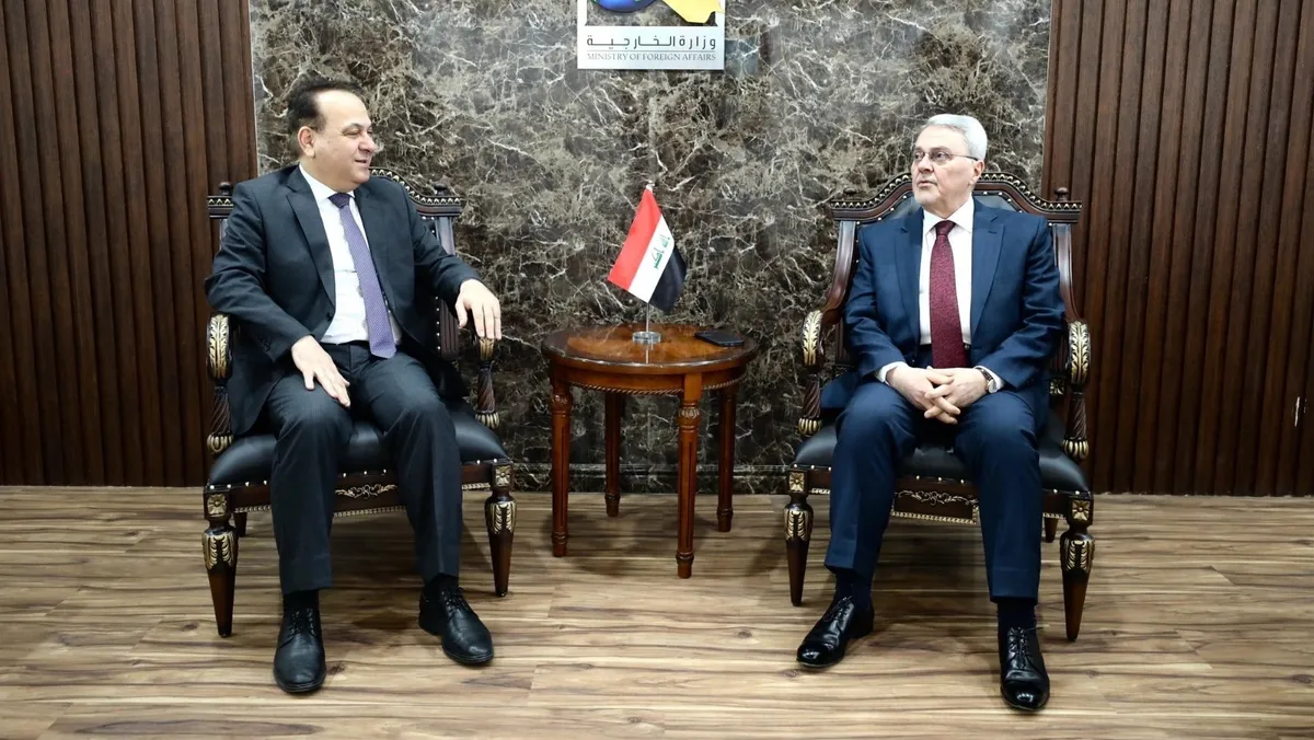 وكيل وزارة الخارجية العراقية السفير محمد بحر العلوم والسفير اللبناني في بغداد علي الحبحاب. 16 أبريل 2025 - .