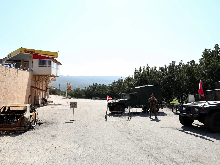 عنصر من الجيش اللبناني يقف عند مدخل دير ميماس في جنوب لبنان. 17 فبراير 2025 - REUTERS