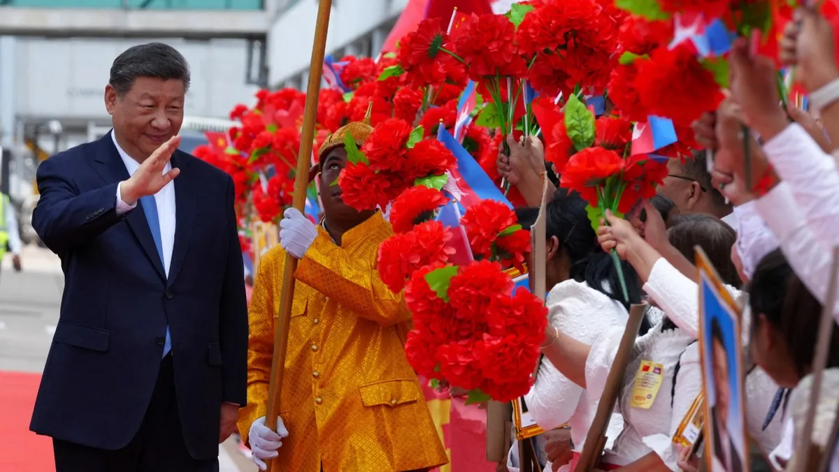 وسيحل شي في كمبوديا الخميس، آخر محطات جولته الآسيوية التي شملت فيتنام وماليزيا، في مسعى لتقوية علاقات بلاده وشراكاتها الاقتصادية مع الدول الثلاث المتضررة من الرسوم التي فرضها الرئيس الأميركي دونالد ترمب.