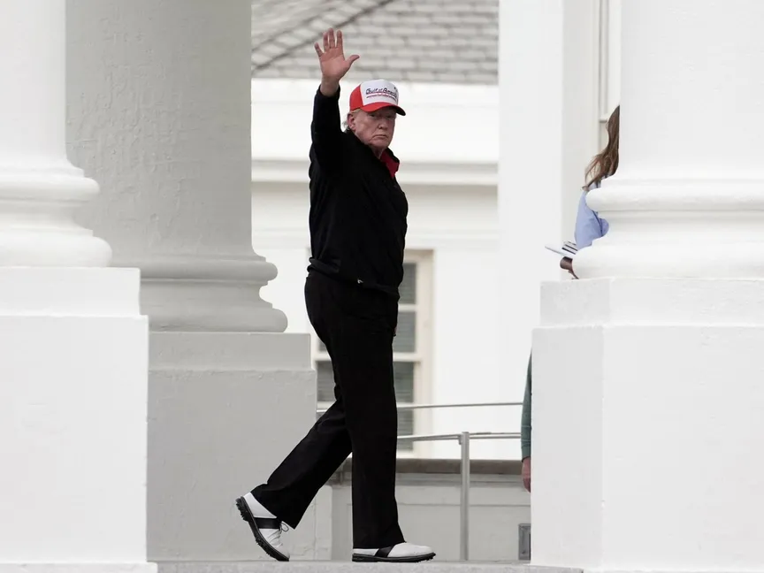 الرئيس الأميركي دونالد ترمب أثناء عودته إلى البيت الأبيض في واشنطن. 20 أبريل 2025 - REUTERS