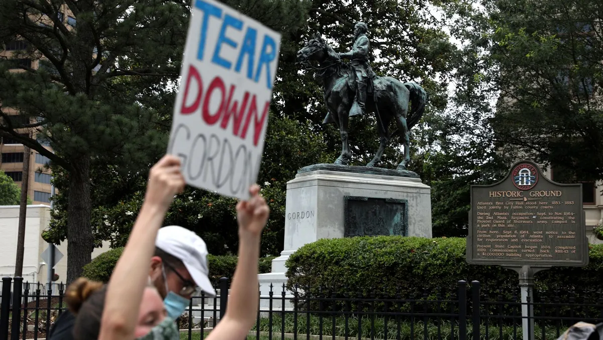 تجمع للاحتجاج على التماثيل الكونفدرالية خارج مبنى الكابيتول في ولاية جورجيا الأميركية - REUTERS