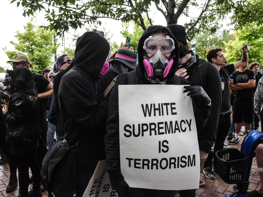 وأضاف أن حركة "أنتيفا" والجماعات الأناركية يؤمنون تقريباً بالإيديولوجيا نفسها، إذ "ينتقد كل منهما الرأسمالية ويطالبون بحل هيكلة السلطة، ومن ضمنها قوات الأمن".