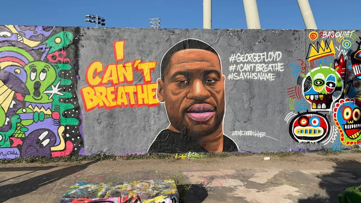 قام أحد فناني الغرافيتي في العاصمة الألمانية برلين بتخليد ذكرى المواطن الأميركي من أصول إفريقية "جورج فلويد" عبر رسم جدارية له على أحد أجزاء جدار برلين في منتزه "ماوربارك" الشهير.