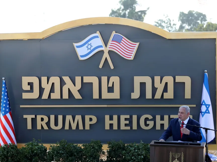 وكانت الحكومة الإسرائيلية قررت العام الماضي إقامة مستوطنة تحمل اسم الرئيس الأميركي بعد اعترافه بالسيادة الإسرائيلية على الهضبة السورية المحتلة. وأطلقت إسرائيل على المستوطنة اسم "رمات ترامب"، و"رمات" كلمة عبرية تعني هضبة.
