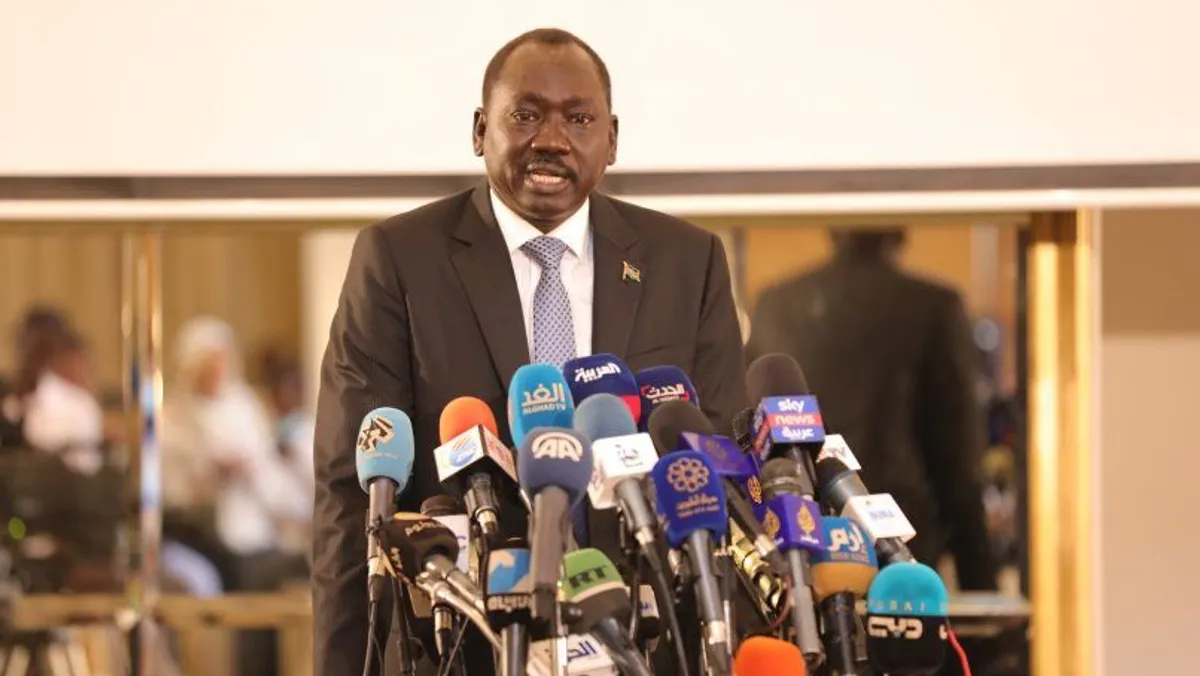 نائب رئيس لجنة الوساطة السودانية ضيو مطوك خلال مؤتمر صحافي في الخرطوم الثلاثاء 14 يوليو 2020. - twitter