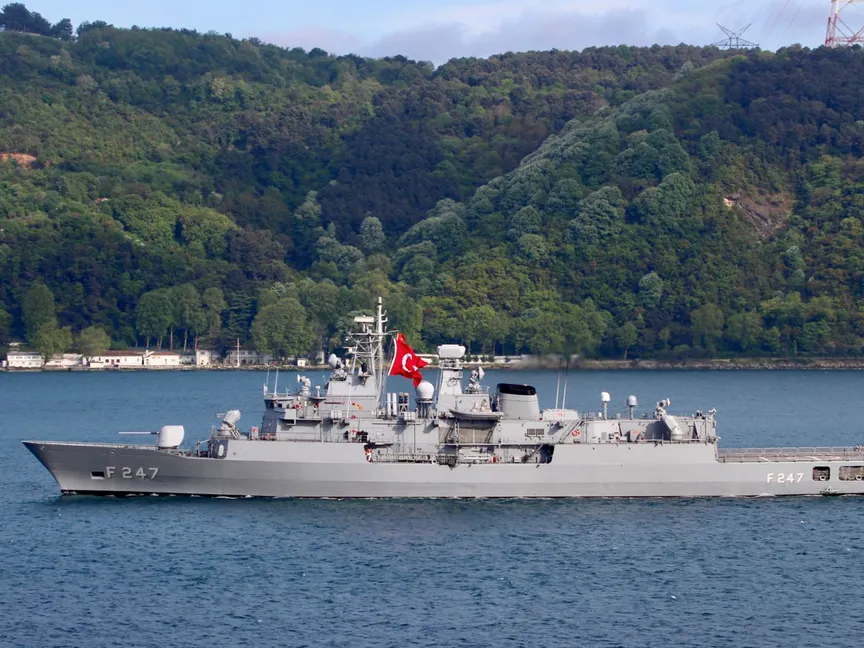 فرقاطة "كمال رئيس" التركية تبحر في مضيق البوسفور الواصل بين البحر الأسود وبحر مرمرة - مايو 2019 - REUTERS