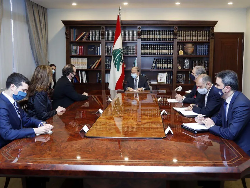 وذكرت الوكالة الوطنية للإعلام أن عون أكد للموفد الأميركي أن العمل يجري حالياً من "أجل قيام حكومة نظيفة تركز على تحقيق الإصلاحات الضرورية للنهوض بالبلاد من الأوضاع الاقتصادية والمالية المتردية التي تمر بها"، كما ركز الرئيس على "أهمية التدقيق الجنائي في حسابات مصرف لبنان، والذي يعتبر خطوة أساسية في الإطار الإصلاحي واستعادة حقوق الدولة وإنهاض الاقتصاد اللبناني".