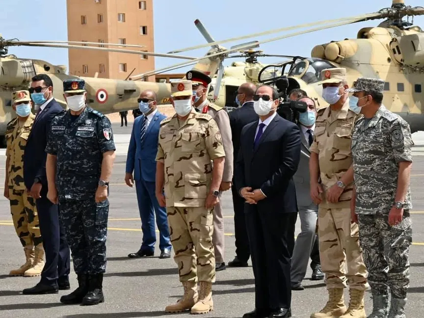 وقال السيسي مخاطباً الوحدات العسكرية: "سعيد جداً أن التقي بكم اليوم، وأطمئن على الكفاءة العالية للقوات المسلحة والقوات الخاصة والجوية، وأنهم جاهزون لأي مهام".