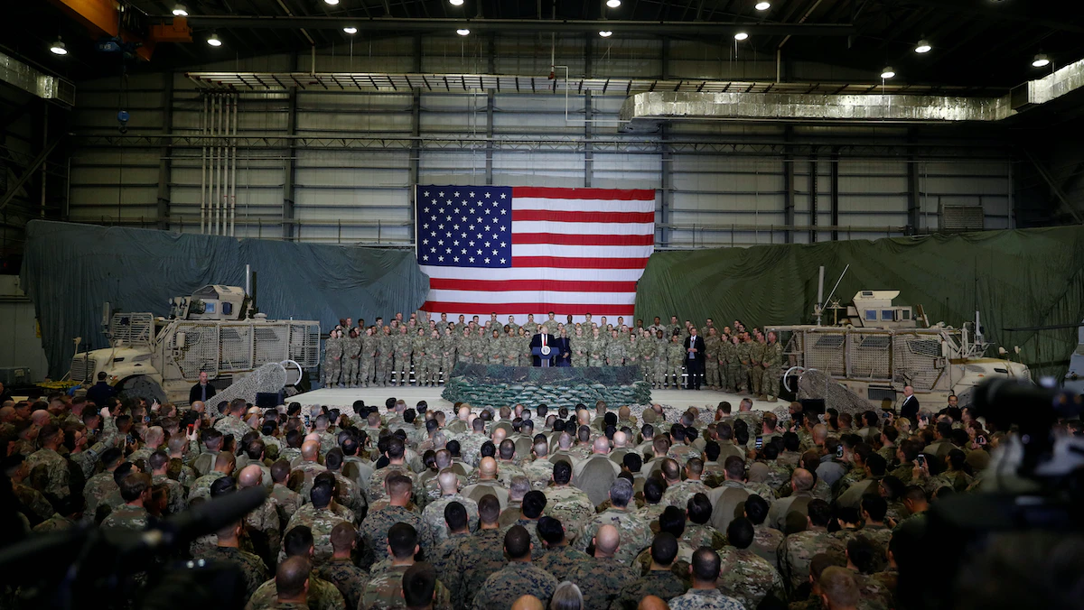 وأضاف في إيجاز صحافي: "سننسحب عسكرياً من أفغانستان، ولكننا لن نتخلى عنها وعن شعبها"، مضيفاً: "القوات الباقية هناك ستكون لحماية البعثة الدبلوماسية".
