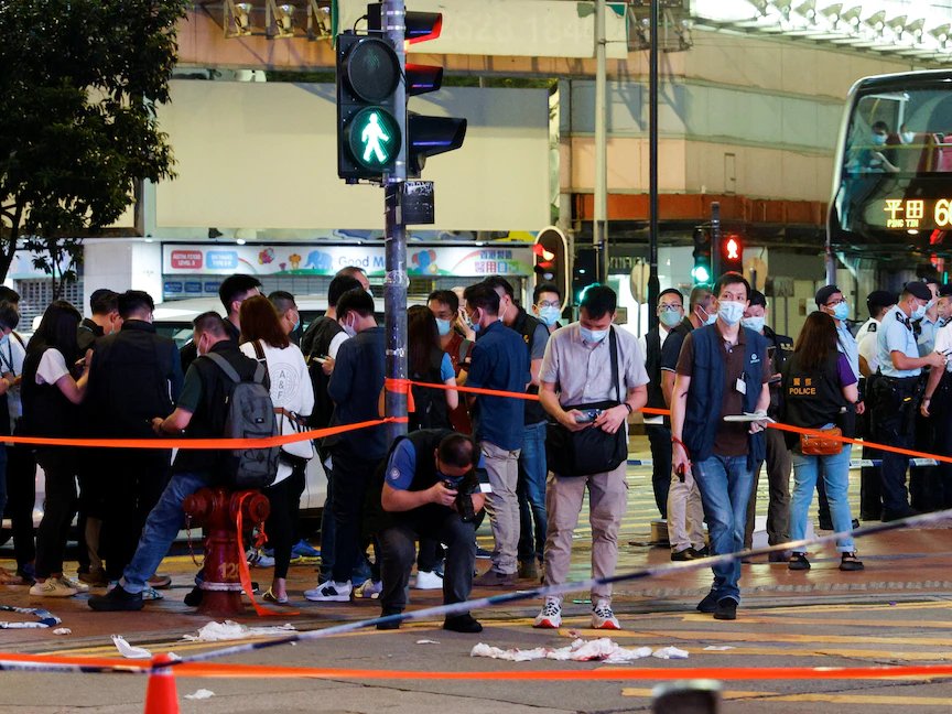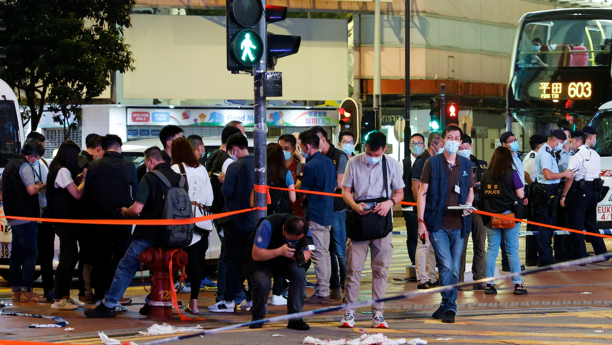 وقع الهجوم مساء الخميس، وبث صحافي من هونغ كونغ وقائعه مباشرة، ويظهر في اللقطات رجل يرتدي قميصاً قاتماً، وهو يطعن شرطياً في ظهره في حي كوزواي باي التجاري.