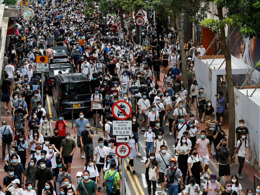 متظاهرون مناهضون لقانون الأمن الوطني يسيرون في هونغ كونغ في ذكرى تسليمها إلى الصين، 1 يوليو 2020 - REUTERS