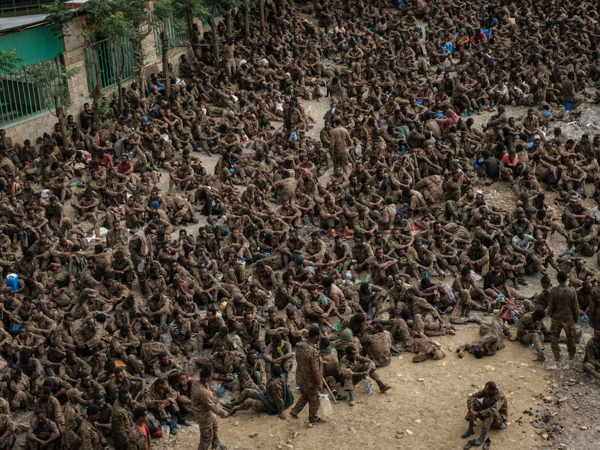 ووفقاً لقوات تيغراي، فقد سار أكثر من 7 آلاف جندي إثيوبي أسير، لما يقارب 75 كيلومتراً جنوب غربي مكيلي، لمدة 4 أيام.