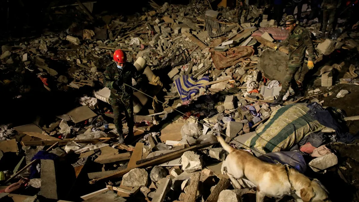 وبعد بضع ساعات من البحث عن ناجين تحت الأنقاض، خرج عشرات من رجال الإنقاذ محملين بأكياس سوداء تحوي أشلاء بشرية، ثم وضعها فريقٌ داخل سيارة الإسعاف.