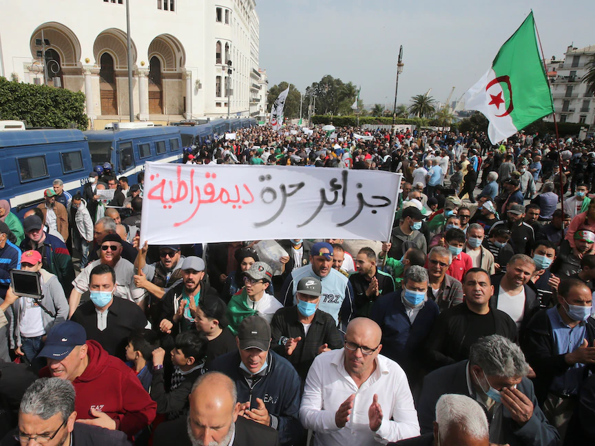 وبدأ الحراك في فبراير 2019 احتجاجاً على ترشح الرئيس السابق عبد العزيز بوتفليقة لولاية خامسة، وكذلك للمطالبة بتغيير جذري للنظام الحاكم منذ استقلال البلاد.