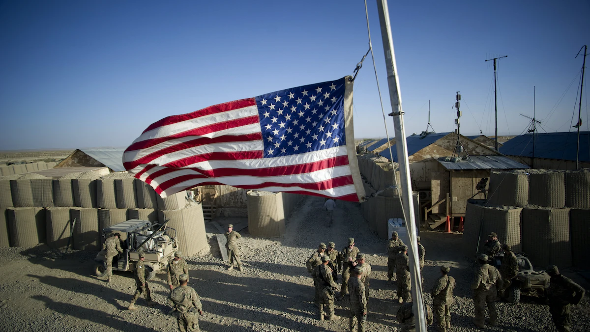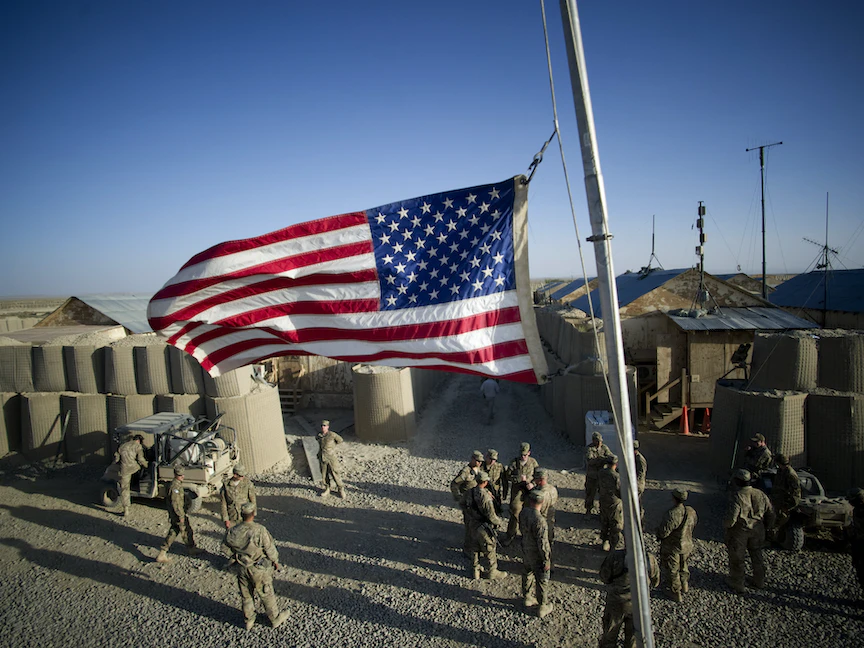 العلم الأميركي يرفرف فوق قاعدة العمليات الأمامية في كوشاموند بأفغانستان، 11 سبتمبر 2011 - AFP