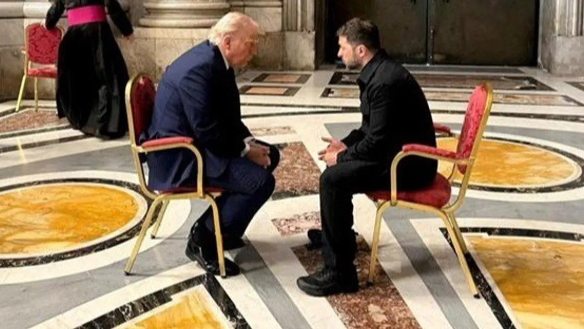 وبحسب صحيفة kyivindependent، فإن الاجتماع لم يستمر سوى بضع دقائق، حيث شوهد ترمب وزيلينسكي وقادة عالميون آخرون، بمن فيهم الرئيس الفرنسي إيمانويل ماكرون، فور انضمامهم إلى مراسم الجنازة.