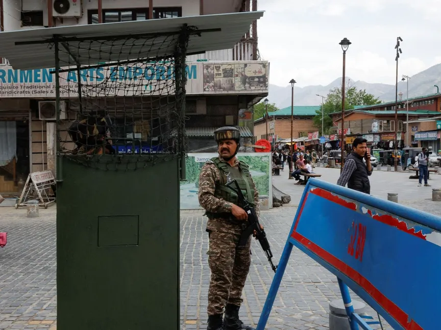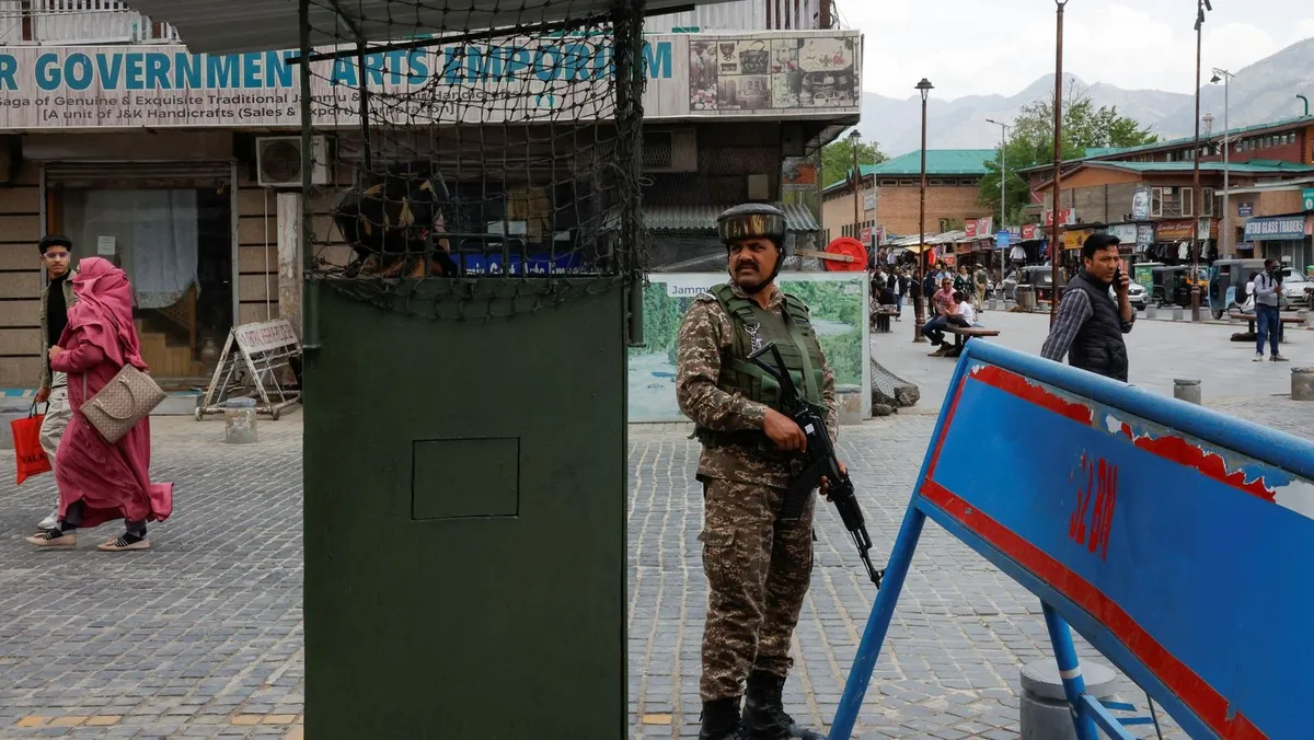 أحد أفراد قوات الأمن الهندية، يقف حارساً في أحد الشوارع، في أعقاب هجوم مسلح مشتبه به بالقرب من باهالجام في جنوب كشمير، في سريناغار، 26 أبريل 2025 - REUTERS