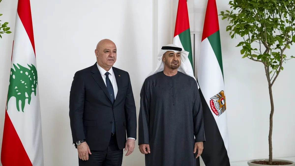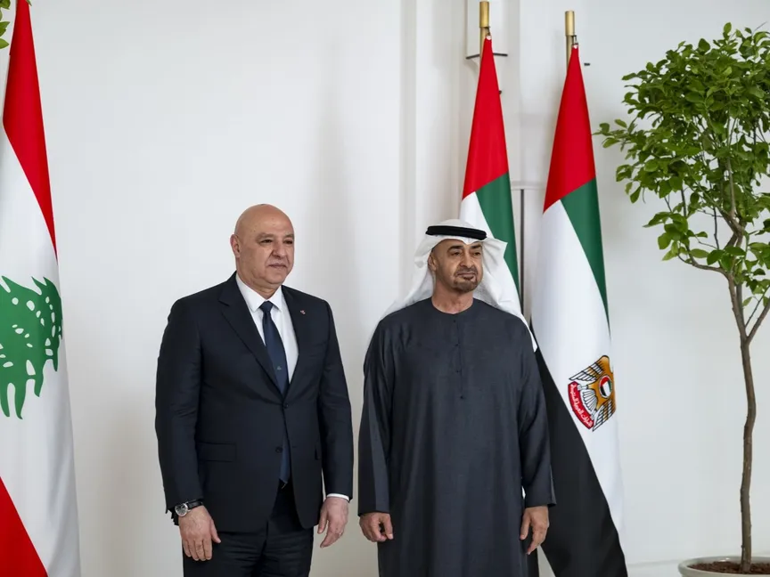 أكد رئيس دولة الإمارات الشيخ محمد بن زايد دعم الإمارات لأمن واستقرار لبنان، مشدداً على أن لبنان أحد "ركائز العمل العربي المشترك"، فيما ثمن الرئيس اللبناني جوزاف عون مواقف دولة الإمارات الداعمة لبلاده.