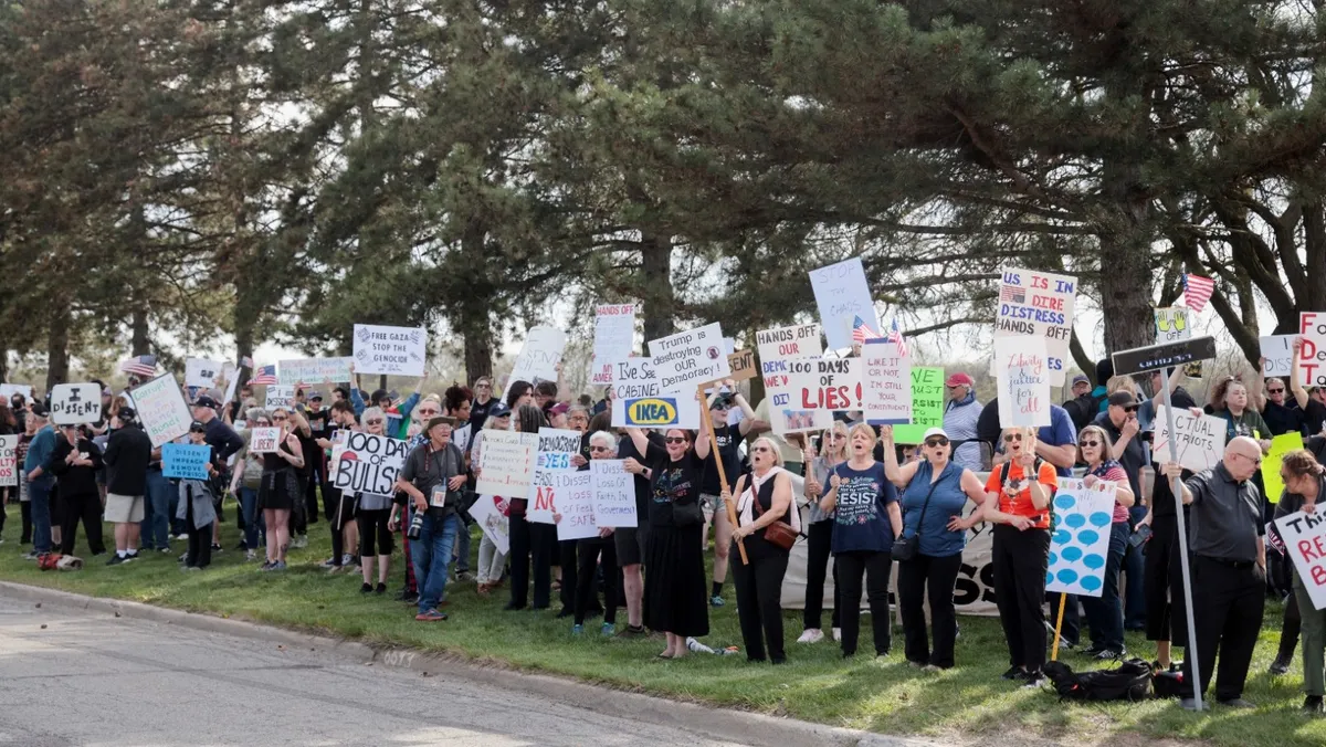 خرج آلاف المتظاهرين في أنحاء الولايات المتحدة، الخميس، احتجاجاً على السياسات المتعلقة بالهجرة واستهداف المحامين والقضاة ودور الأثرياء في اتخاذ القرارات في ظل إدارة الرئيس دونالد ترمب.