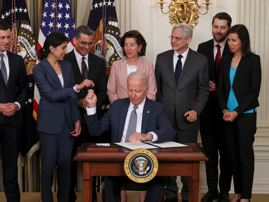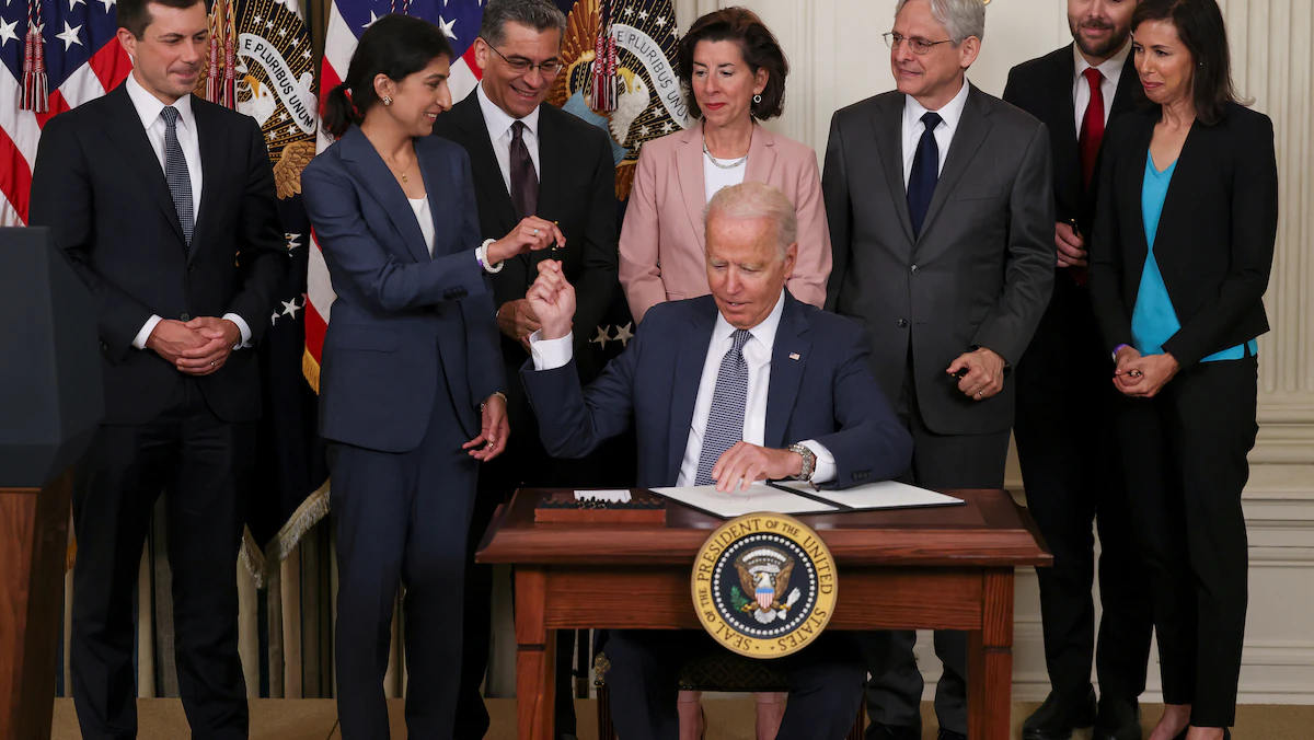 الرئيس الأميركي جو بايدن يوقع أمراً تنفيذياً بشأن الاقتصاد الأميركي في البيت الأبيض، واشنطن - REUTERS