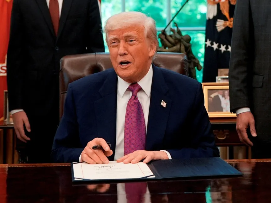 الرئيس الأميركي دونالد ترمب يوقع قراراً مشتركاً في المكتب البيضاوي بالبيت الأبيض في واشنطن العاصمة، الولايات المتحدة. 9 مايو 2025 - Reuters