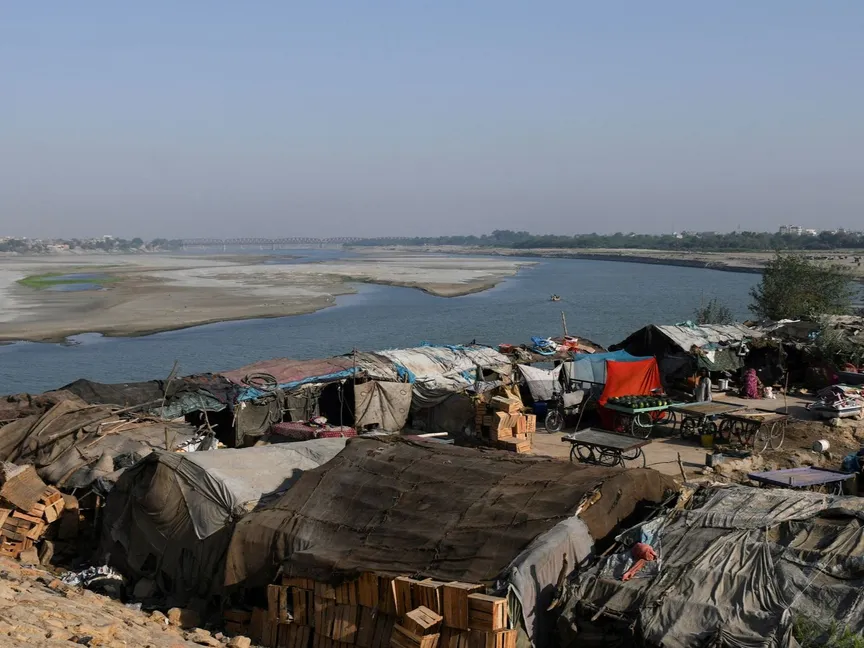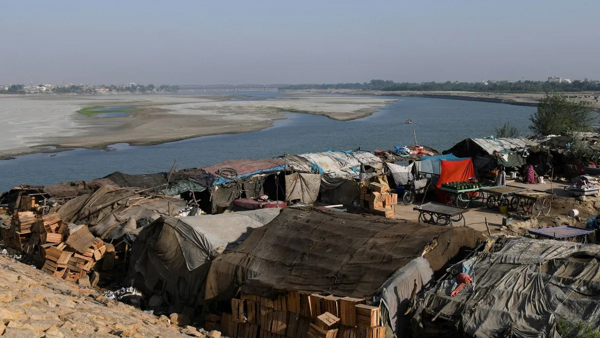 صورة أرشيفية: منظر لخيام سكنية يملكها مستوطنون غير نظاميين على مجرى نهر السند الجاف في حيدر أباد، باكستان. 25 أبريل 2025 - REUTERS