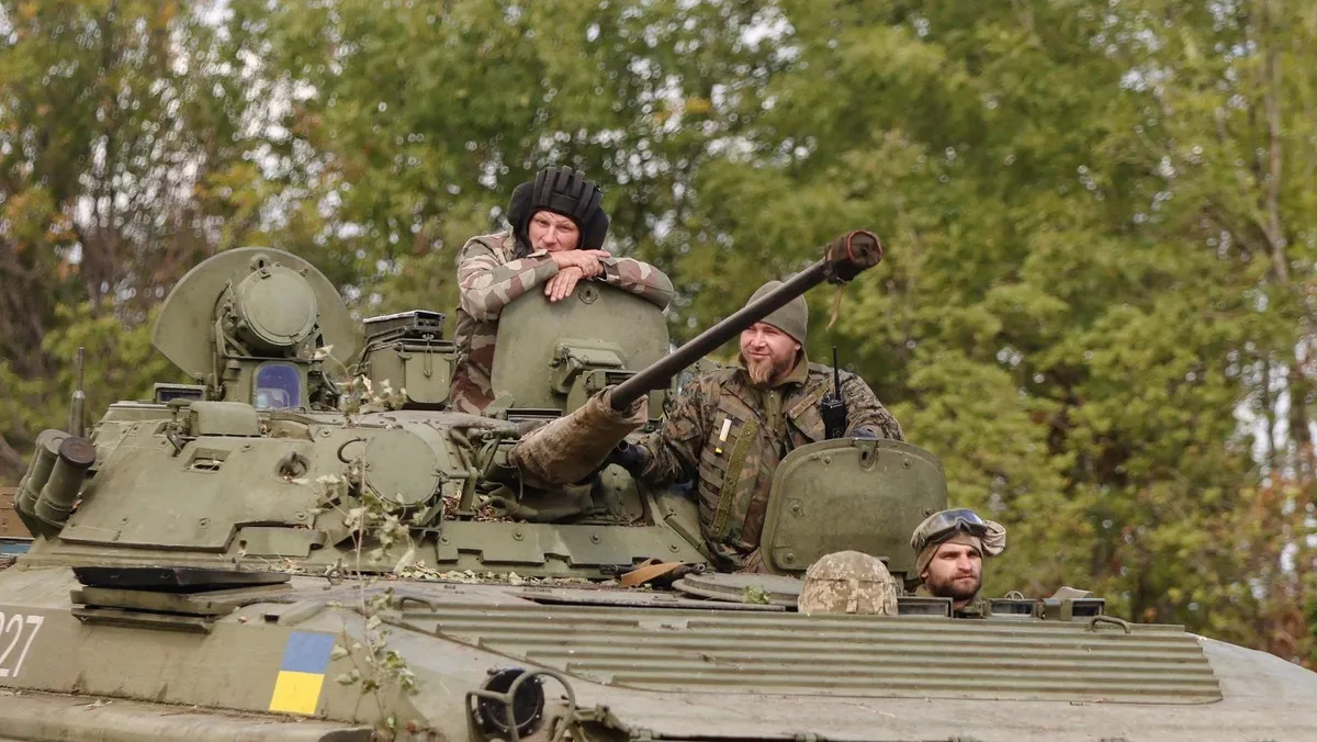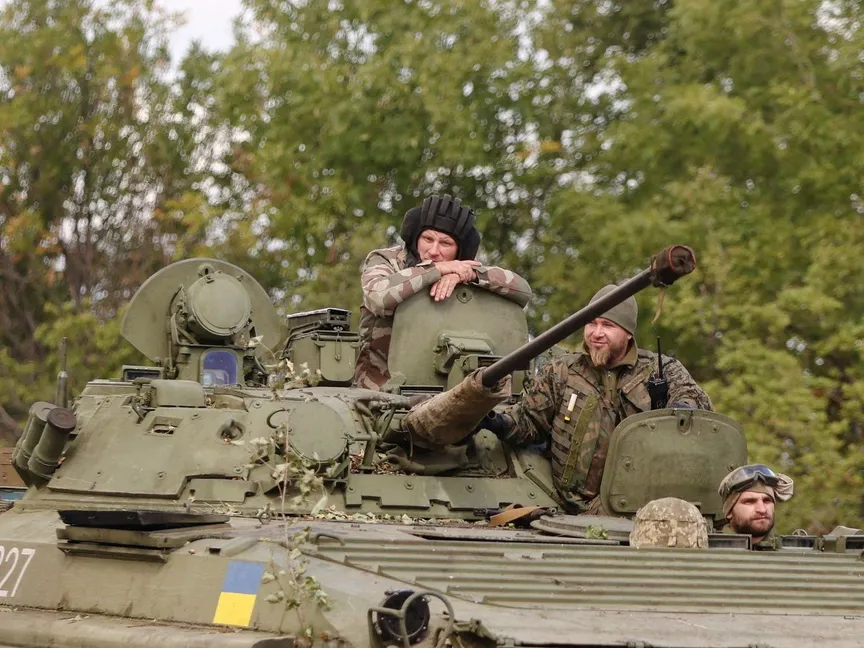 جنود أوكرانيون على متن ناقلة جنود برمائية مدرعة أثناء في دونيتسك شرق أوكرانيا، 7 سبتمبر 2022. - REUTERS