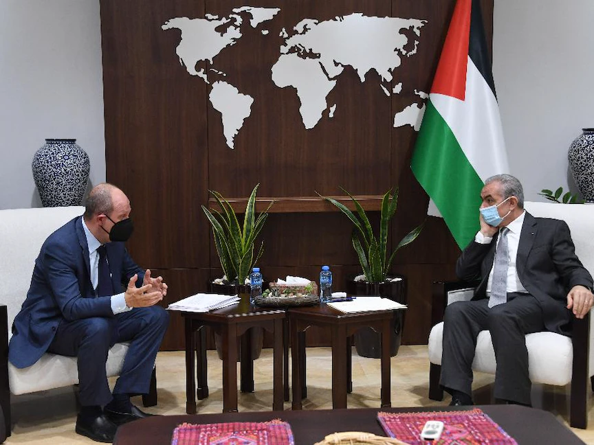 بحث رئيس الوزراء الفلسطيني محمد اشتية مع المبعوث الأميركي لعملية السلام في الشرق الأوسط هادي عمرو الثلاثاء، إعادة إعمار قطاع غزة، وتعزيز العلاقات الفلسطينية الأميركية، وملء الفراغ السياسي.