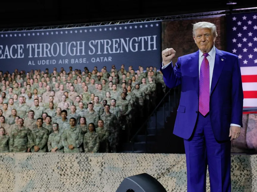 وقال ترمب من أكبر قاعدة عسكرية أميركية في الشرق الأوسط: "لم يكن أحدٌ أقوى من الجيش في دعمنا، لا أحد. لذا، أودُّ أن أشكركم جزيل الشكر. شرفٌ عظيم. شكراً جزيلاً"، مشيراً إلى أن "ميزانيته لعام 2026 تتضمن زيادات كبيرة في رواتب أفراد الخدمة".