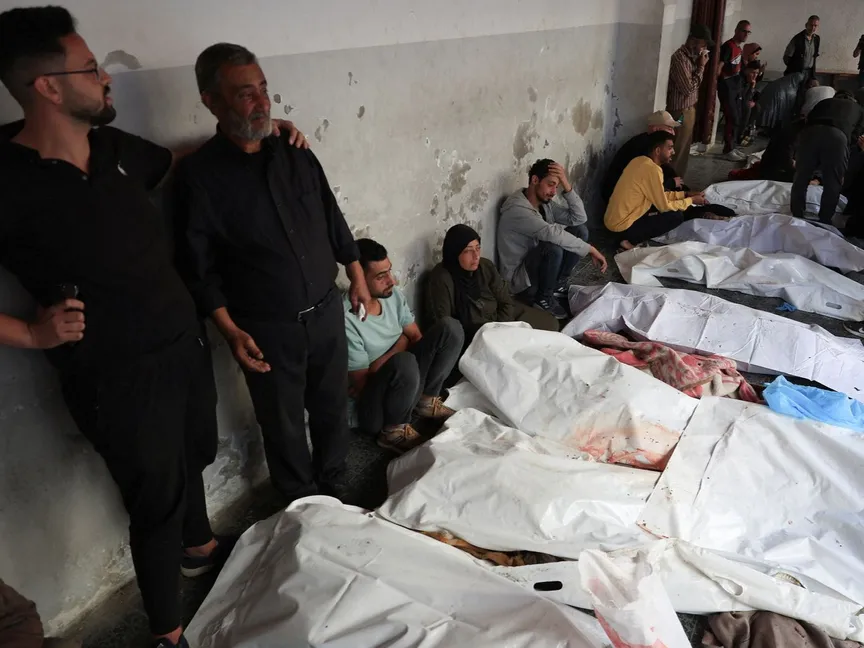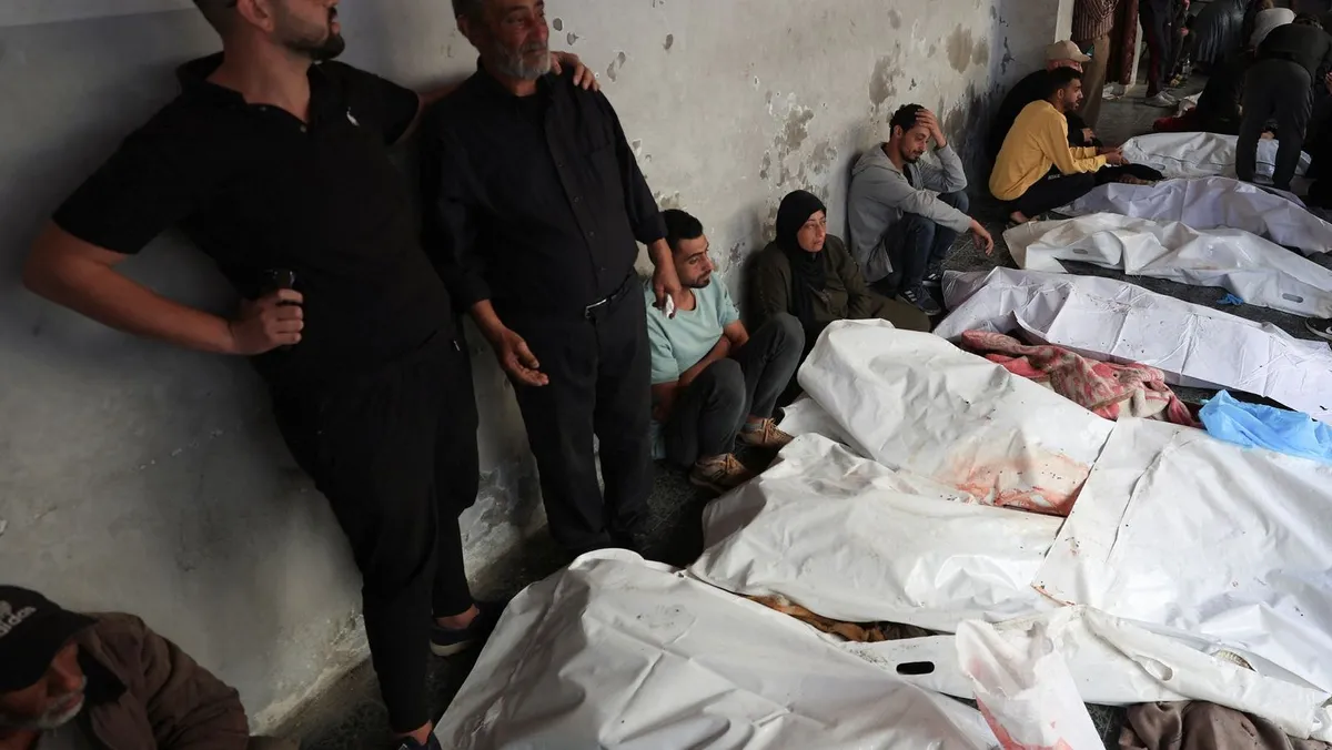 جثامين فلسطينيين قتلتهم إسرائيل في غارات جوية على قطاع غزة، المستشفى الأهلي المعمداني، 26 مايو 2025 - REUTERS