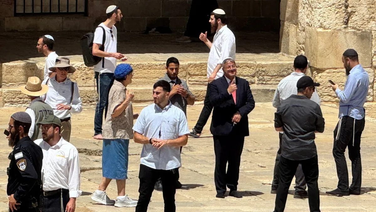 في وقت سابق الاثنين، اقتحم وزير الأمن الداخلي الإسرائيلي إيتمار بن جفير مع مئات المستوطنين باحات المسجد الأقصى في ذكرى احتلال القدس الشرقية، وشارك في "مسيرة الأعلام" تحت هتافات "لا مساعدات لغزة" و"الموت للعرب"، وفق ما أوردت وسائل إعلام إسرائيلية.