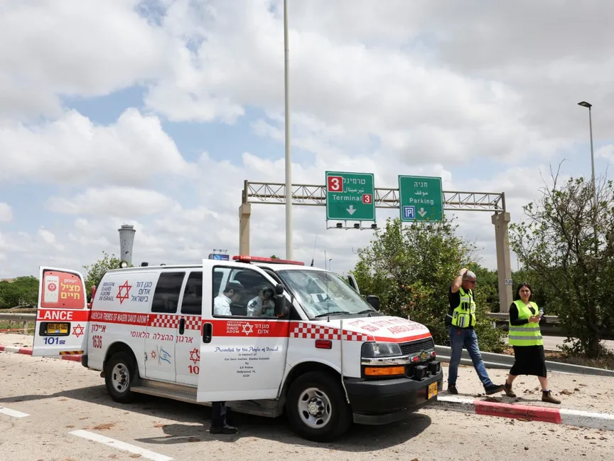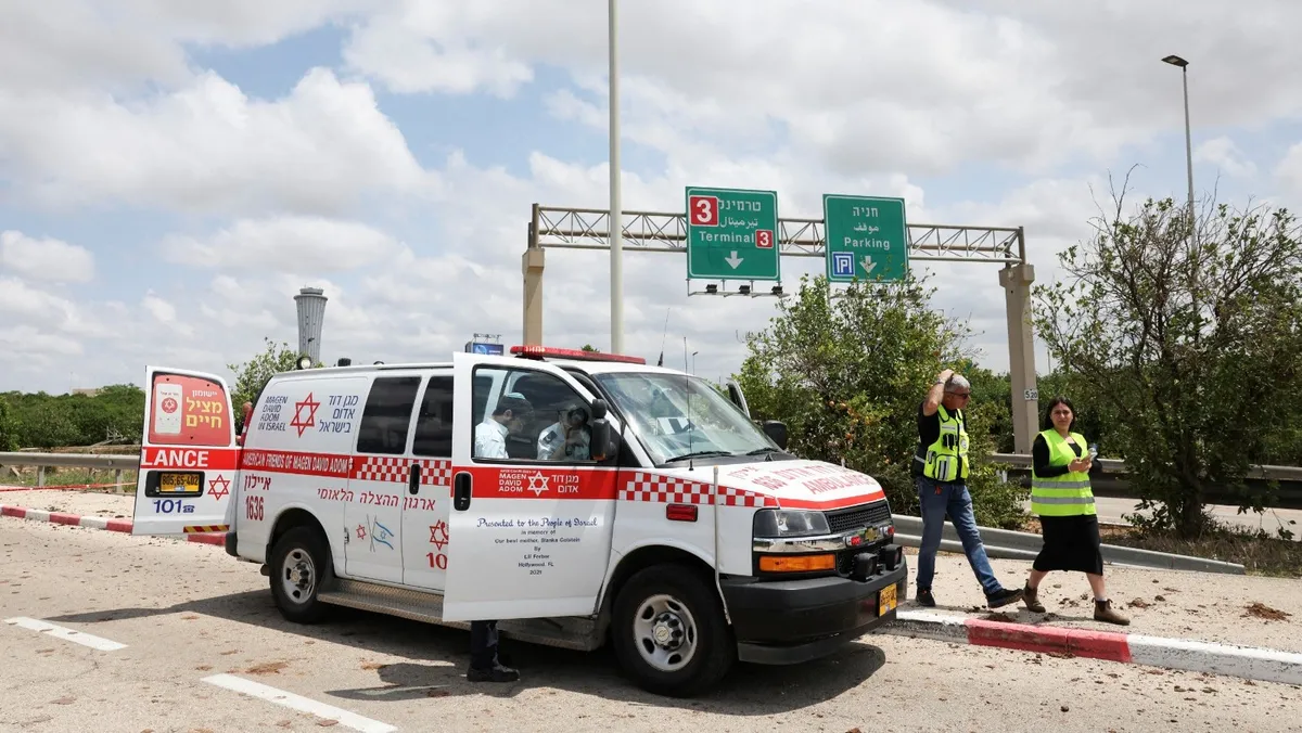 أفراد الطوارئ يعملون في موقع هجوم صاروخي سابق انطلق من اليمن عند مدخل مطار بن جوريون في تل أبيب بإسرائيل. 4 مايو 2025 - Reuters