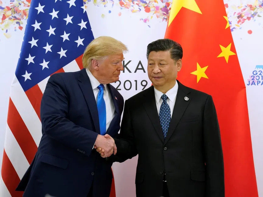 الرئيسان الأميركي دونالد ترمب والصيني شي جين بينج خلال لقاء على هامش قمة العشرين في أوساكا، اليابان. 29 يونيو 2019 - Reuters