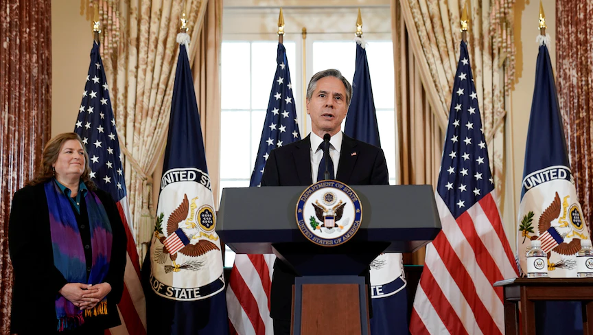 بلينكن وجه الدبلوماسيين الأميركيين لاتخاذ عدد من الخطوات، بما في ذلك المشاركة بانتظام مع المدافعين عن حقوق الإنسان وممثلي المجتمع المدني في البلدان التي يعملون فيها، لا سيما تلك "التي تتعرض فيها الديمقراطية أو حقوق الإنسان للتهديد"، وأوصى مسؤولي وزارة الخارجية الذين يسافرون إلى الخارج بإدراج الاجتماعات مع هؤلاء النشطاء في جداولهم.