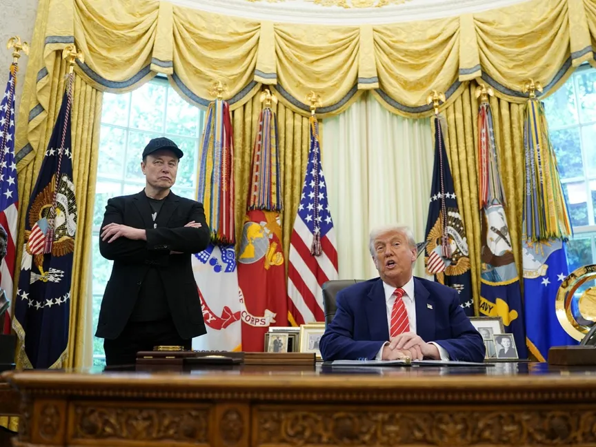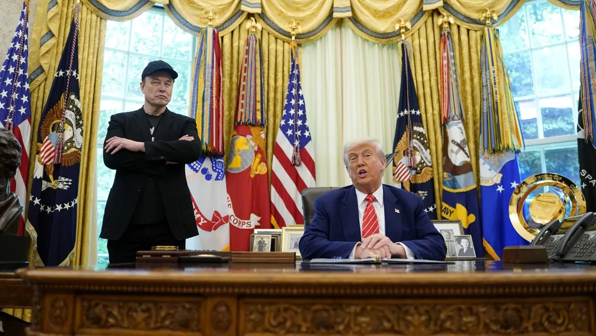 الرئيس الأميركي دونالد ترمب وإيلون ماسك في المكتب البيضاوي. واشنطن. 30 مايو 2025 - Reuters