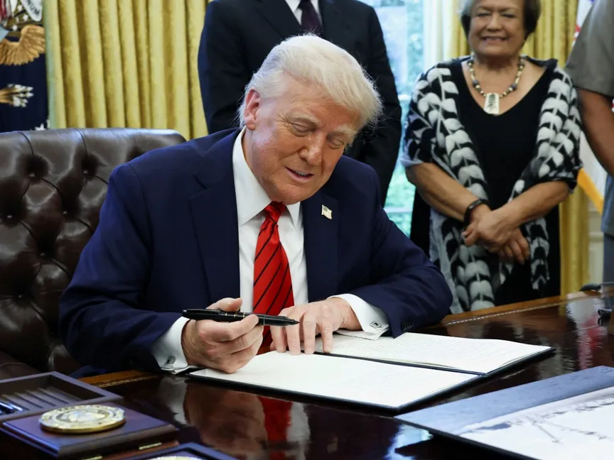 الرئيس الأميركي دونالد ترمب يوقع أوامر تنفيذية في البيت الأبيض بالعاصمة واشنطن - 17 أبريل 2025 - Reuters