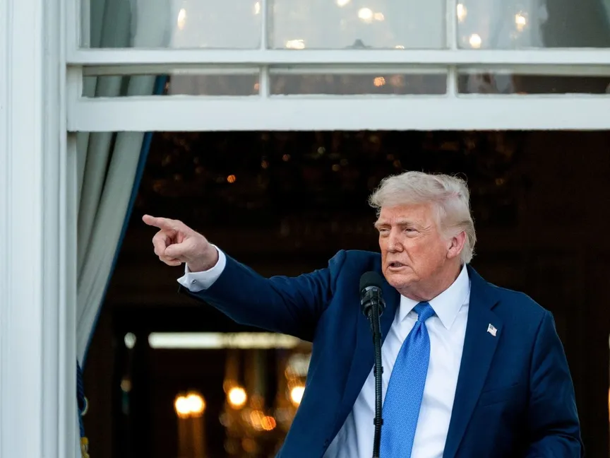 الرئيس الأميركي دونالد ترمب على شرفة ترومان خلال حفل صيفي في الحديقة الجنوبية للبيت الأبيض في واشنطن العاصمة، الولايات المتحدة. 4 يونيو 2025 - Bloomberg