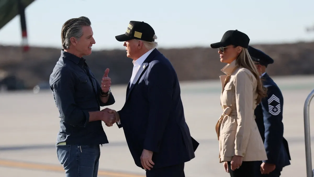 وجاءت تصريحات ترمب دعماً لتعليقات مستشاره لشؤون الحدود توم هومان، الذي هدد باعتقال مسؤولي الولايات والمسؤولين المحليين الذين يعرقلون إنفاذ قوانين الهجرة الفيدرالية، بمن فيهم نيوسوم وعمدة لوس أنجلوس كارين باس.