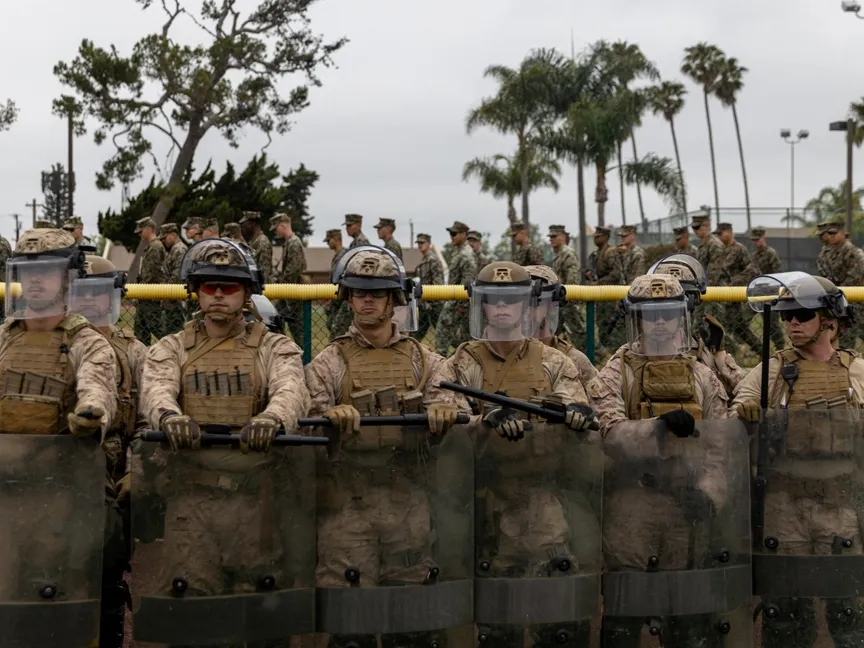 وأثار قرار  ترمب إرسال قوات الحرس الوطني ومشاة البحرية إلى لوس أنجلوس جدلاً واسعاً في الولايات المتحدة بخصوص استخدام الجيش على الأراضي الأميركية، ووضع الرئيس الجمهوري في مواجهة حاكم ولاية كاليفورنيا الديمقراطي جافين نيوسوم.